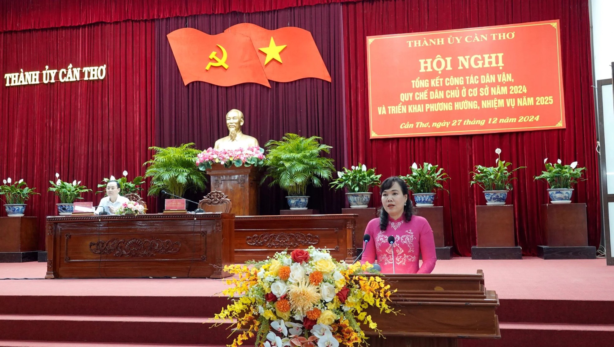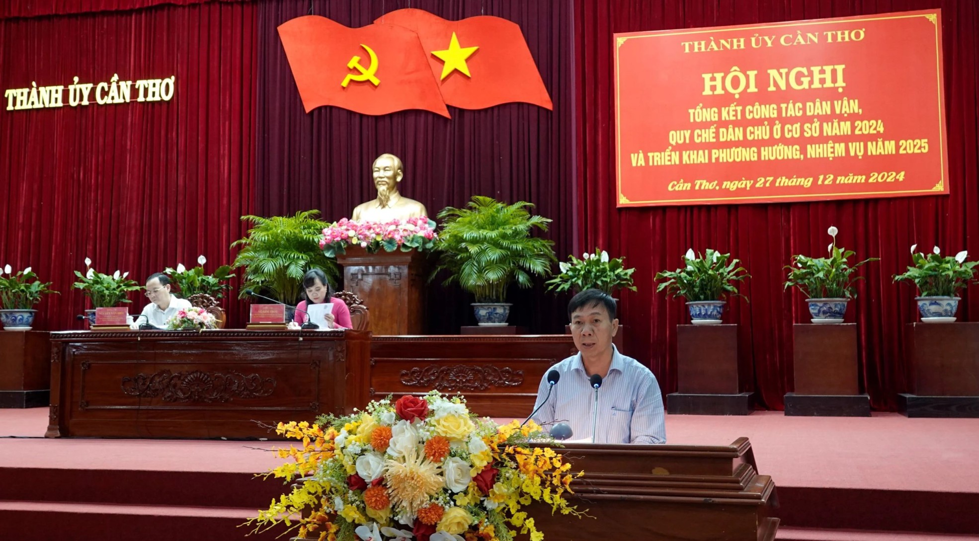 (CT) - Ngày 27-12-2024, Ban Thường vụ Thành ủy Cần Thơ tổ chức hội nghị tổng kết công tác dân vận, thực hiện quy chế dân chủ (QCDC) ở cơ sở năm 2024 và triển khai phương hướng, nhiệm vụ năm 2025.