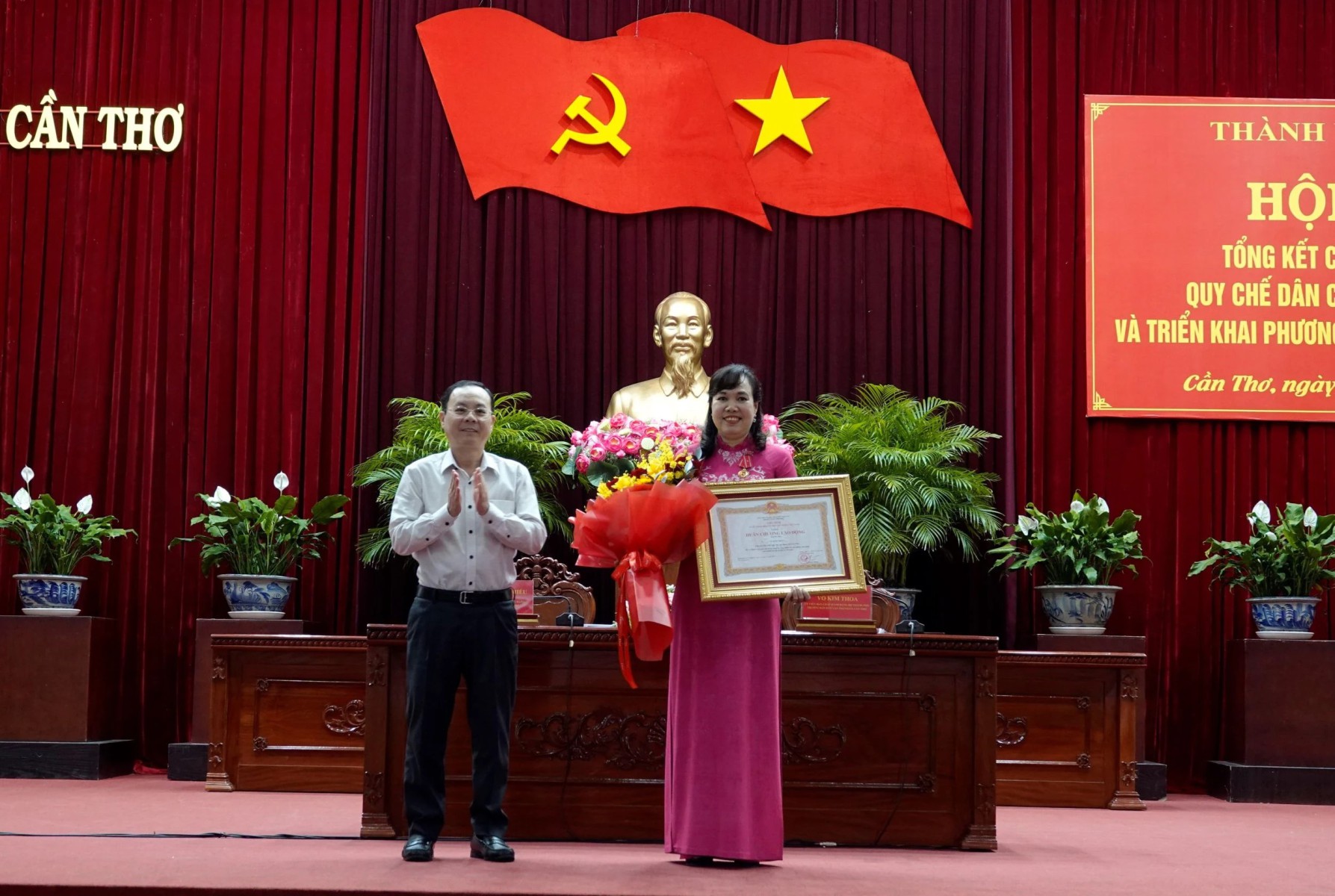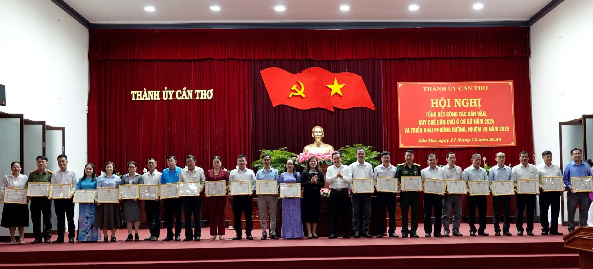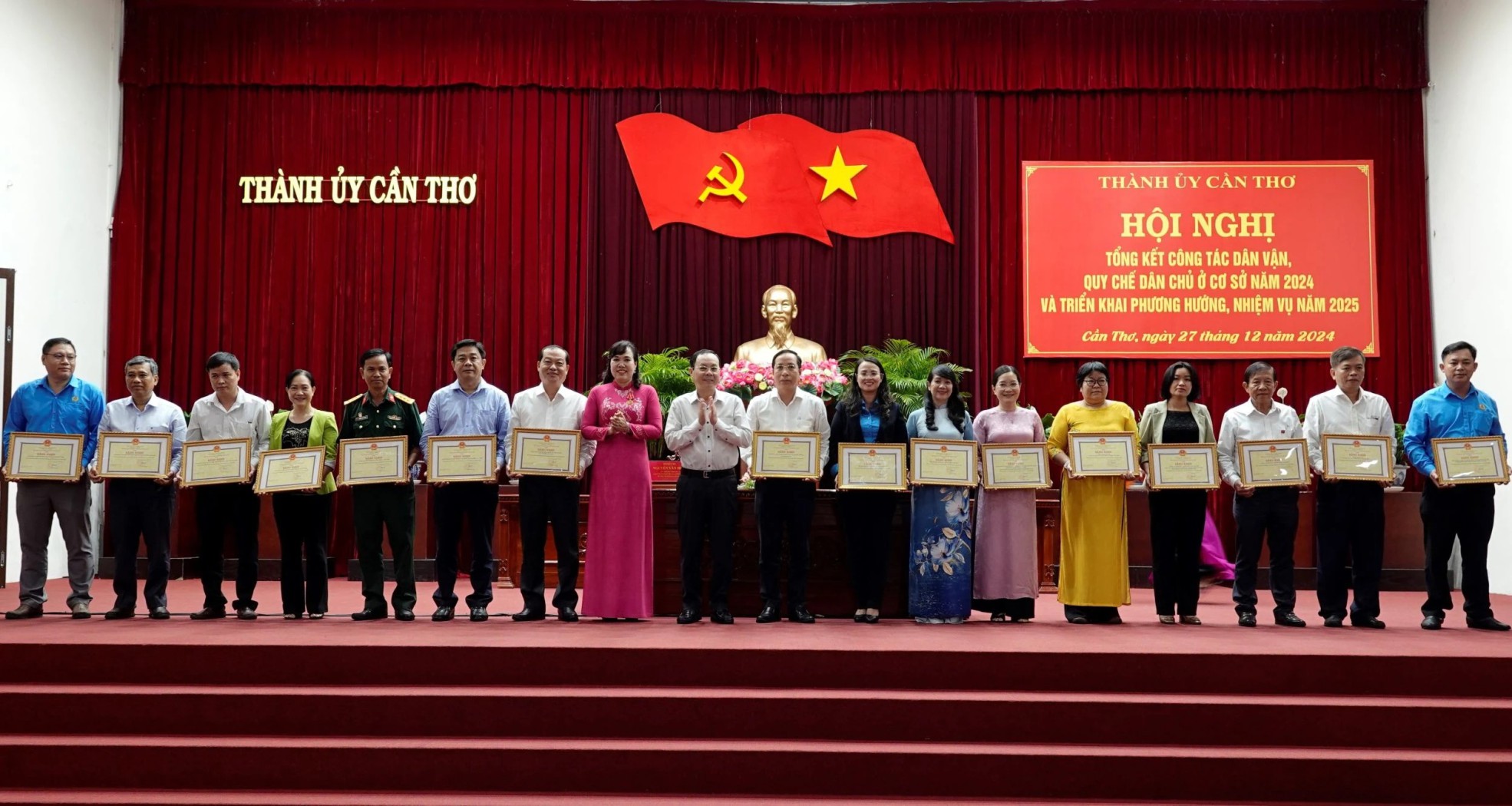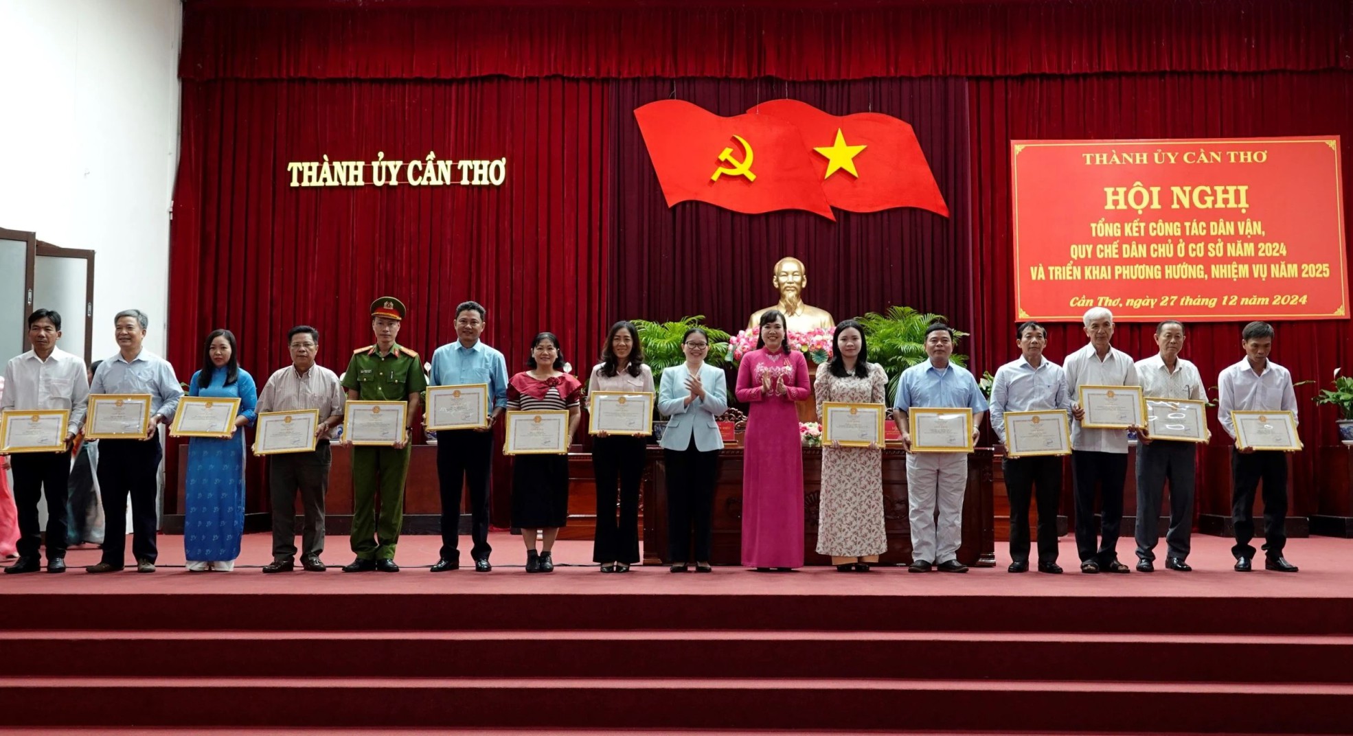 Dịp này, đồng chí Võ Kim Thoa, Trưởng Ban Dân vận Thành ủy Cần Thơ, nhận Huân chương Lao động hạng Ba. Nhiều tập thể, cá nhân có thành tích xuất sắc trong thực hiện QCDC ở cơ sở, công tác dân vận, mô hình Dân vận khéo năm 2024 được biểu dương khen thưởng.