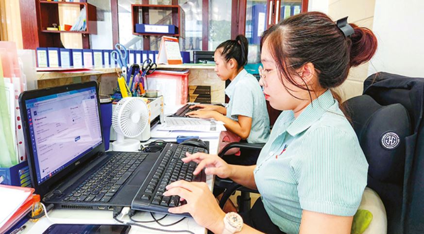 Nhân viên Công ty TNHH Kế toán Tư vấn quản lý Tây Nam Á thực hiện thao tác cung ứng dịch vụ HĐĐT khởi tạo từ máy tính tiền đến doanh nghiệp, hộ kinh doanh.