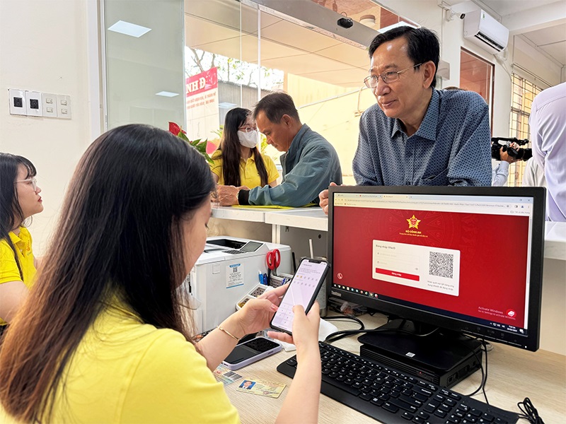Người dân được hỗ trợ đăng ký tài khoản sử dụng dịch vụ công trực tuyến tại ứng dụng VNeID trên điện thoại thông minh.