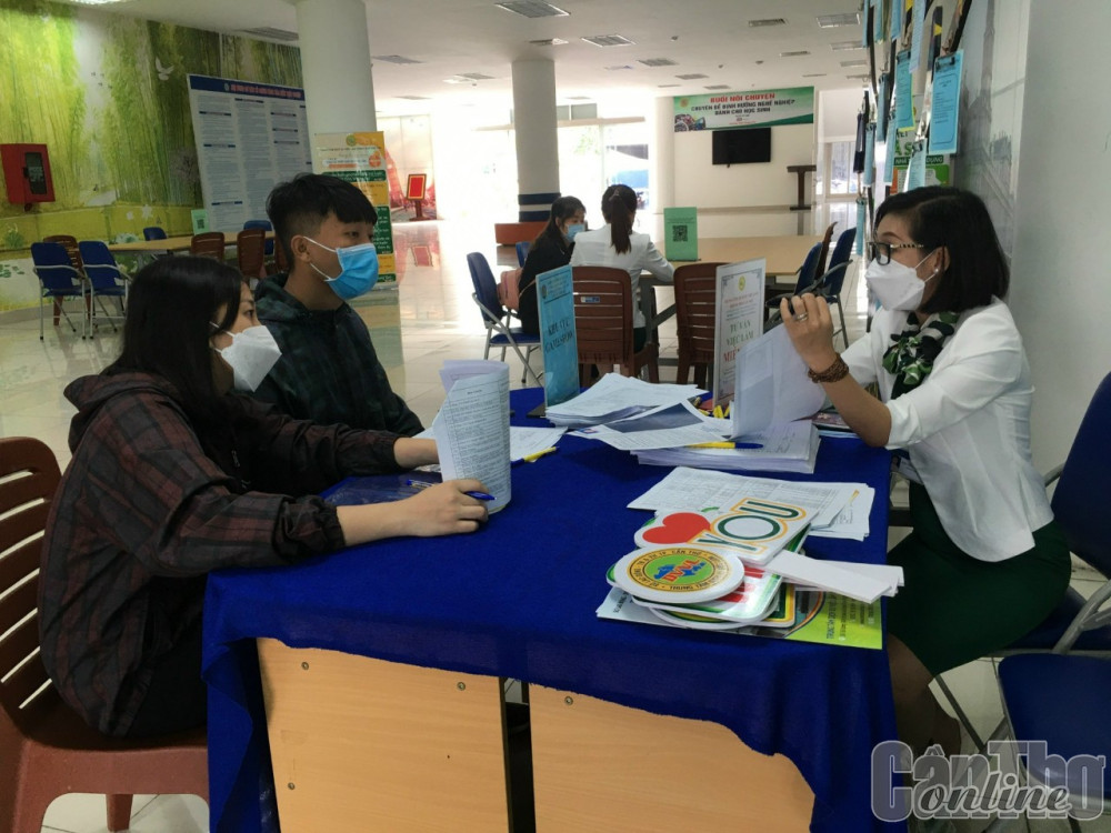 Cán bộ Trung tâm Dịch vụ việc làm TP Cần Thơ hướng dẫn lao động nữ lựa chọn việc làm phù hợp trong thời đại kỹ thuật số.
