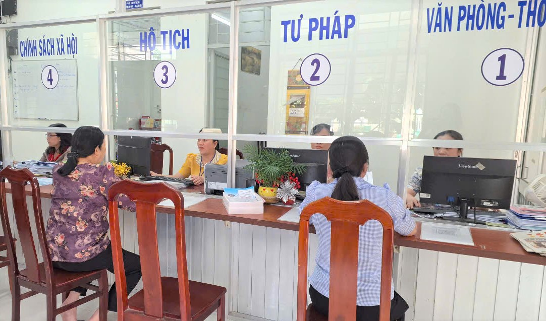 Các công chức tại UBND phường Long Hòa, quận Bình Thủy giải quyết TTHC cho người dân