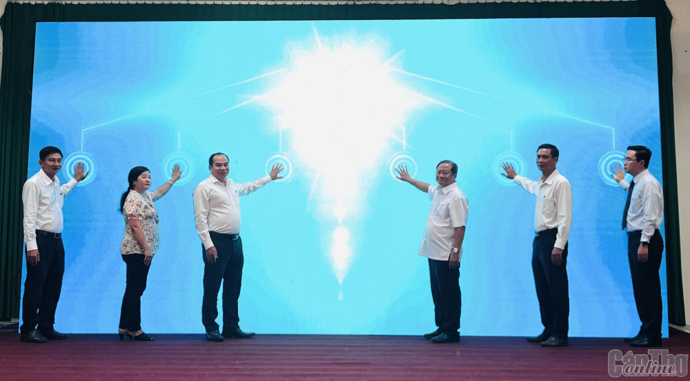 Lãnh đạo quận Bình Thủy thực hiện nghi thức nhấn nút khởi động Trung tâm IOC.
