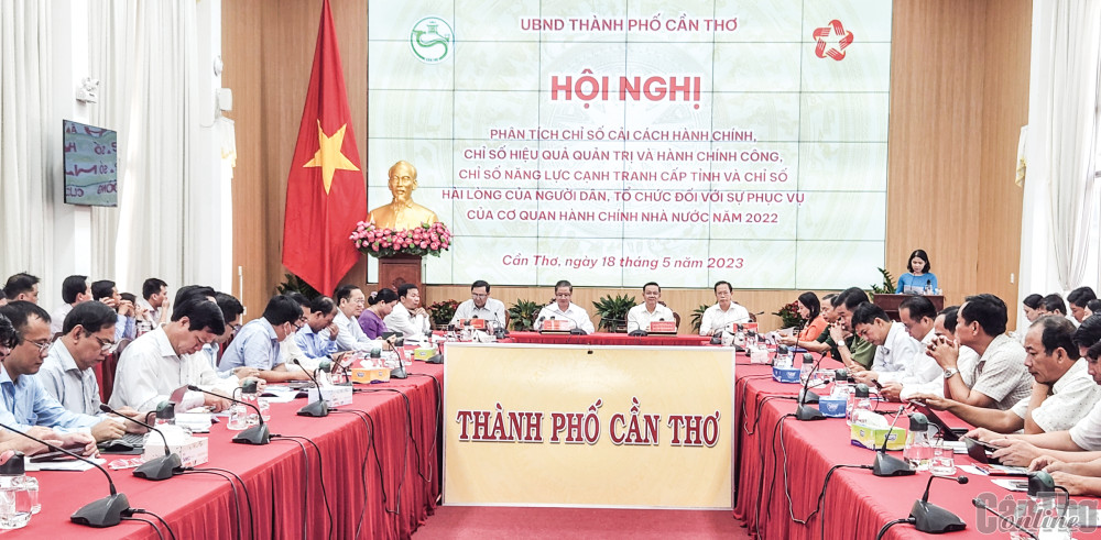 (CT) - Ngày 18-5, UBND TP Cần Thơ tổ chức hội nghị Phân tích chỉ số cải cách hành chính (PAR INDEX), chỉ số hiệu quả quản trị và hành chính công (PAPI), chỉ số năng lực cạnh tranh cấp tỉnh (PCI), chỉ số hài lòng của người dân, tổ chức đối với sự phục vụ của cơ quan hành chính nhà nước (SIPAS) năm 2022. Ông Trần Việt Trường, Phó Bí thư Thành ủy, Chủ tịch UBND thành phố, chủ trì hội nghị.