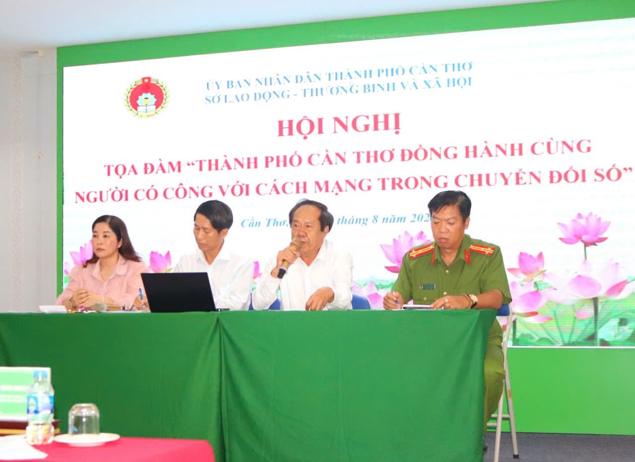 Sáng ngày 20/8/2024, tại Hội trường Trung tâm Dịch vụ việc làm, Sở Lao động - Thương binh và Xã hội thành phố Cần Thơ tổ chức Hội nghị tọa đàm “Thành phố Cần Thơ đồng hành cùng Người có công với cách mạng trong chuyển đổi số”. Đến dự Hội nghị tọa đàm có Bà Trần Thị Xuân Mai - Thành viên Ủy ban nhân dân thành phố, Giám đốc Sở Lao động - Thương binh và Xã hội; Ông Trần Thanh Lam, Phó Giám đốc Sở Lao động - Thương binh và Xã hội; Đồng chí Thượng tá Văn Nam Giang, Phó trưởng phòng Cảnh Sát Quản lý hành chính về trật tự xã hội, Công an thành phố; Bà Huỳnh Thị Thu Thủy - Phó Giám đốc Bưu điện thành phố; Ông Nguyễn Văn An - Giám đốc Trung tâm Công nghệ thông tin và Truyền thông Cần Thơ cùng 164 đại biểu tham dự (bao gồm: Đại diện Lãnh đạo các phòng chuyên môn; Công chức phòng Chính sách phụ trách lĩnh vực Người có công; Công chức Văn phòng Sở phụ trách lĩnh vực Cải cách hành chính và Chuyển đổi số; Đại diện Lãnh đạo và Công chức phụ trách lĩnh vực Người có công của các Phòng Lao động - Thương binh và Xã hội quận, huyện; Công chức phụ trách Văn hóa - Xã hội của các UBND xã, phường, thị trấn; Người có công với cách mạng và thân nhân).