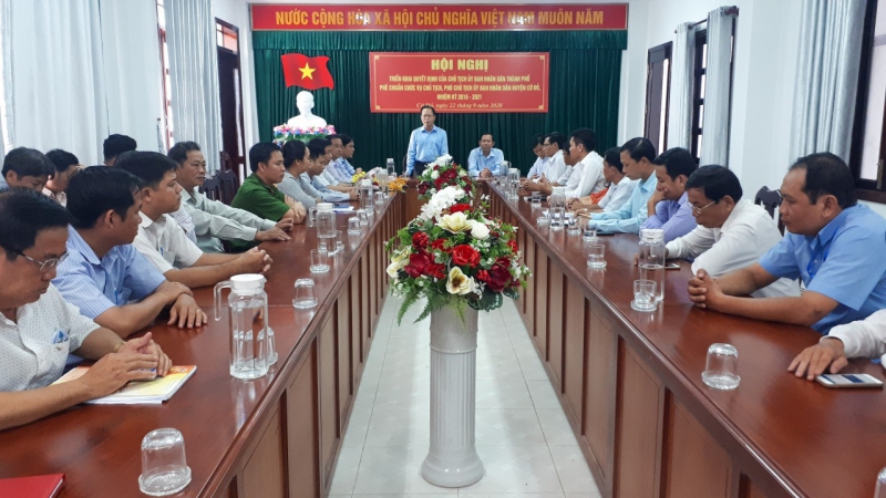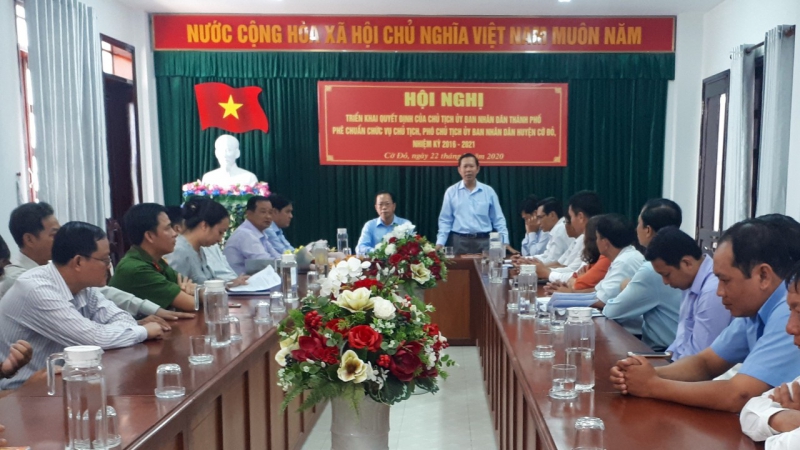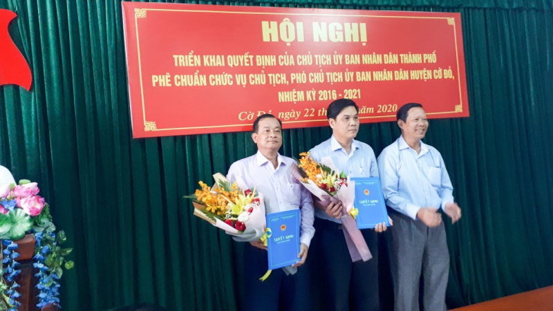 Căn cứ Hướng dẫn số 01/HD-UBND ngày 28/6/2016 của UBND thành phố về việc hướng dẫn trình tự, thủ tục báo cáo cấp có thẩm quyền trước khi bầu Chủ tịch, Phó Chủ tịch UBND cấp huyện, cấp xã và thực hiện ý kiến chỉ đạo của Chủ tịch UBND thành phố. Ngày 22/9/2020, Sở Nội vụ phối hợp với UBND huyện Cờ Đỏ tổ chức buổi họp công bố và trao các quyết định cho ông Nguyễn Trường Thọ và ông Phạm Minh Thuấn. Đến dự và chủ trì buổi họp có ông Nguyễn Hoàng Ba, Thành ủy viên, Giám đốc Sở Nội vụ; về phía lãnh đạo địa phương dự họp có ông Châu Việt Tha, Bí thư Huyện ủy, Chủ tịch HĐND huyện Cờ Đỏ, cùng lãnh đạo UBND, HĐND, UBMTTQ Việt Nam huyện Cờ Đỏ, thủ trưởng các phòng chuyên môn thuộc UBND huyện và Chủ tịch UBND các xã, thị trấn.