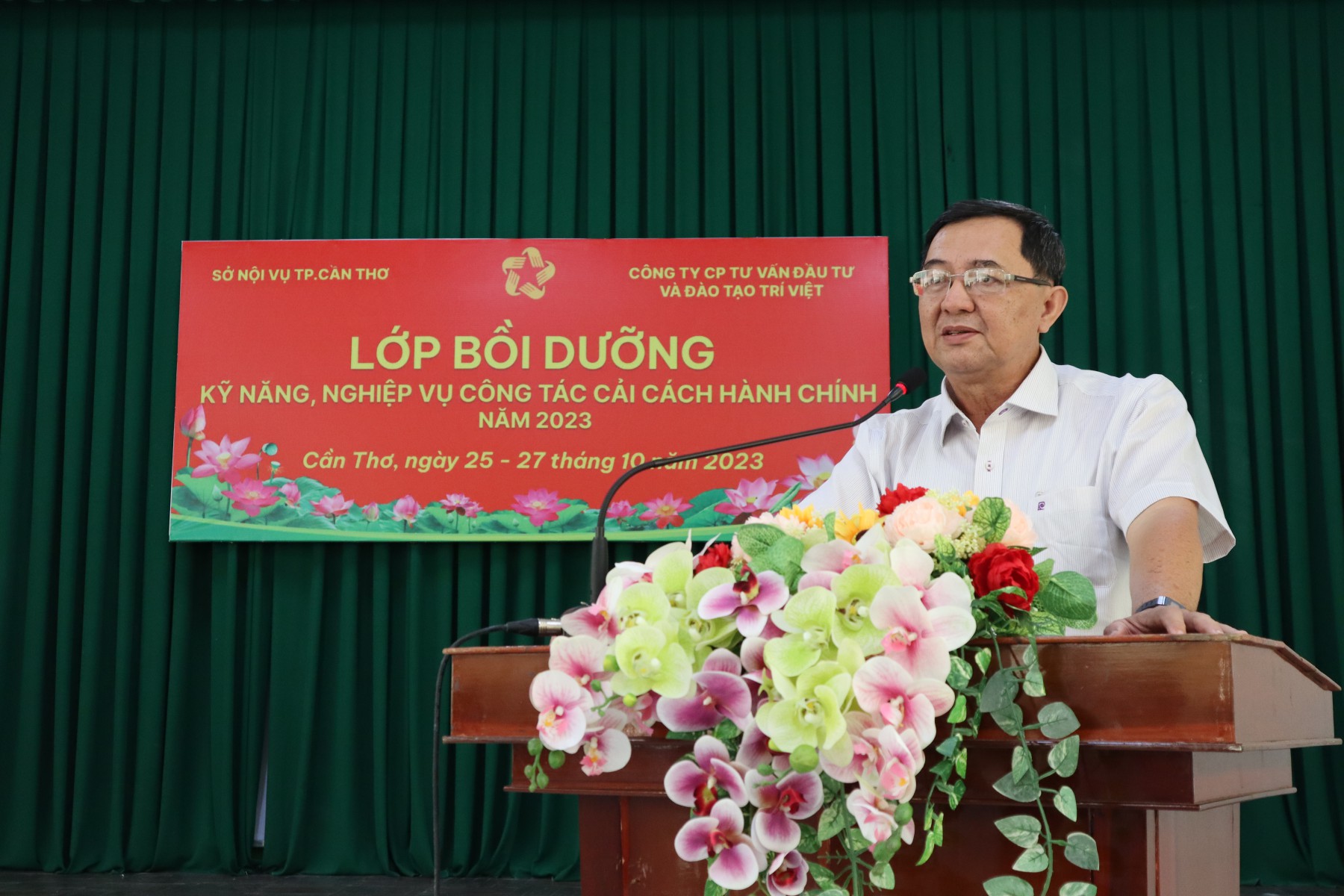 Sáng nay ngày 25/10, tại Bảo tàng thành phố Cần Thơ, Sở Nội vụ phối hợp cùng với Công ty Cổ phần Tư vấn Đầu tư và Đào tạo Trí Việt tổ chức khai mạc Lớp Bồi dưỡng kỹ năng, nghiệp vụ công tác Cải cách hành chính năm 2023 (lớp thứ nhất).
