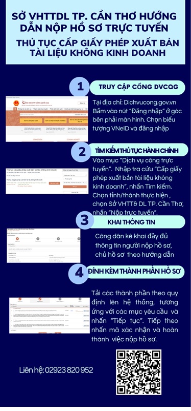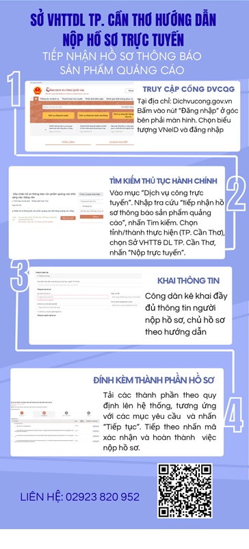 Từ 01/7/2025, cổng Dịch vụ công thành phố Cần Thơ đã ngừng hoạt động, tất cả các dịch vụ công trực tuyến được tích hợp và thực hiện duy nhất trên Cổng Dịch vụ công quốc gia (dichvucong.gov.vn). Theo đó, nhằm kịp thời hướng dẫn, hỗ trợ người dân nộp hồ sơ trực tuyến, không làm gián đoạn hoạt động giải quyết hồ sơ, phục vụ người dân, doanh nghiệp. Ngay từ 1/7/2025 Sở Văn hóa, Thể thao và Du lịch đã thực hiện hướng dẫn nộp hồ sơ TTHC trực tuyến thông qua hình thức Infographic. Qua hình thức này, giúp người dân, doanh nghiệp dễ dàng tiếp cận, dễ hiểu, dễ ghi nhớ, dễ thực hiện trong thực hiện nộp hồ sơ trực tuyến. Việc thực hiện Infographic trong hướng dẫn thực hiện thủ tục hành chính, giúp thay đổi cách truyền thông thủ tục hành chính từ văn bản dài sang hình thức cô động, ngắn gọn, mang lại hiệu quả truyền thông cao, nâng cao sự hài lòng của người dân, doanh nghiệp đối với sự phục vụ của cơ quan nhà nước./.