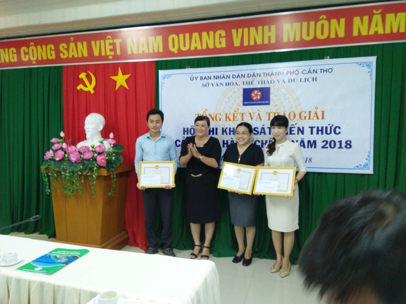 Bà Hồ Lâm Bạch Vân - Phó Giám đốc Sở Văn hóa - Thể thao và Du lịch trao trao Giấy khen kèm phần thưởng cho cá nhân đạt giải Hội thi sáng kiến CCHC năm 2018