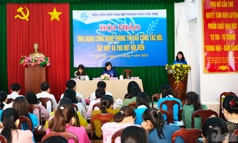 (CT) - Ngày 4-4, Hội LHPN TP Cần Thơ tổ chức Hội thảo “Ứng dụng công nghệ thông tin vào công tác Hội, tập hợp và thu hút hội viên”. Đây là hoạt động thực hiện khâu đột phá của Nghị quyết Đại hội đại biểu Phụ nữ TP Cần Thơ lần thứ XIV, nhiệm kỳ 2021-2026 về “Đẩy mạnh ứng dụng công nghệ thông tin trong hoạt động Hội; xây dựng chi, tổ Hội vững mạnh”.