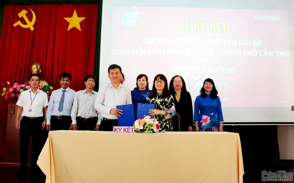 Hội LHPN TP Cần Thơ ký kết ghi nhớ hợp tác chuyển đổi số với Tập đoàn công nghiệp - viễn thông quân đội Viettel Cần Thơ giai đoạn 2022-2026.