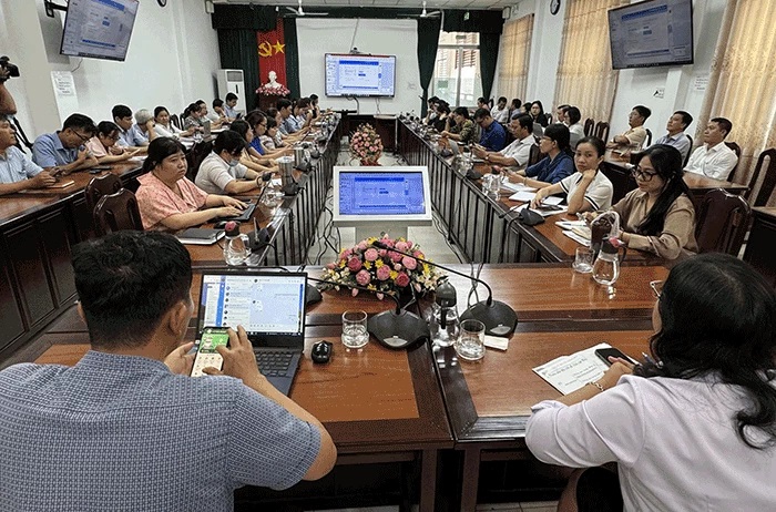Công chức, viên chức được tập huấn hướng dẫn thực hiện dịch vụ công không giấy tờ. Ảnh: Q. THÁI