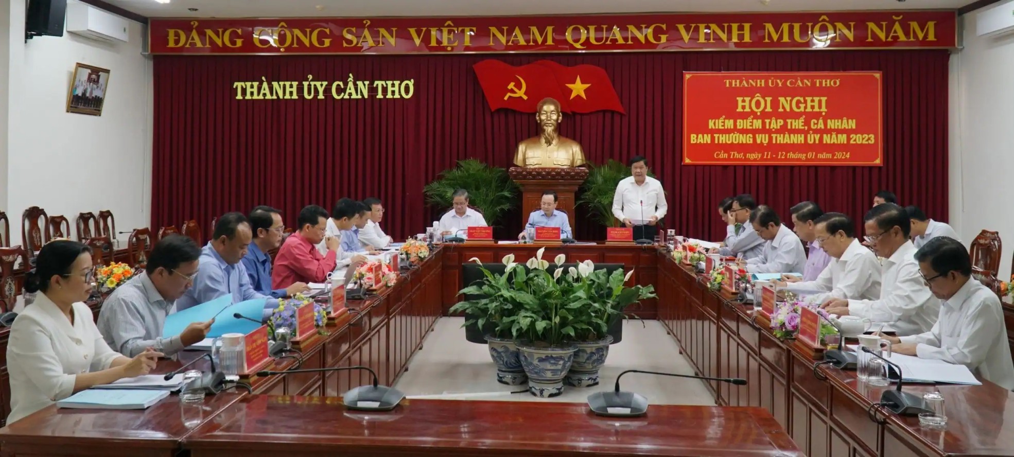 (CT) - Sáng 11-1, tập thể và cá nhân Ban Thường vụ Thành ủy Cần Thơ tổ chức hội nghị kiểm điểm năm 2023. Đến dự có đại diện lãnh đạo các ban xây dựng Đảng Trung ương và Văn phòng Trung ương Đảng, tất cả 13 Ủy viên BTV Thành ủy. Đồng chí Nguyễn Văn Hiếu, Ủy viên dự khuyết Ban Chấp hành Trung ương Đảng, Bí thư Thành ủy chủ trì hội nghị.