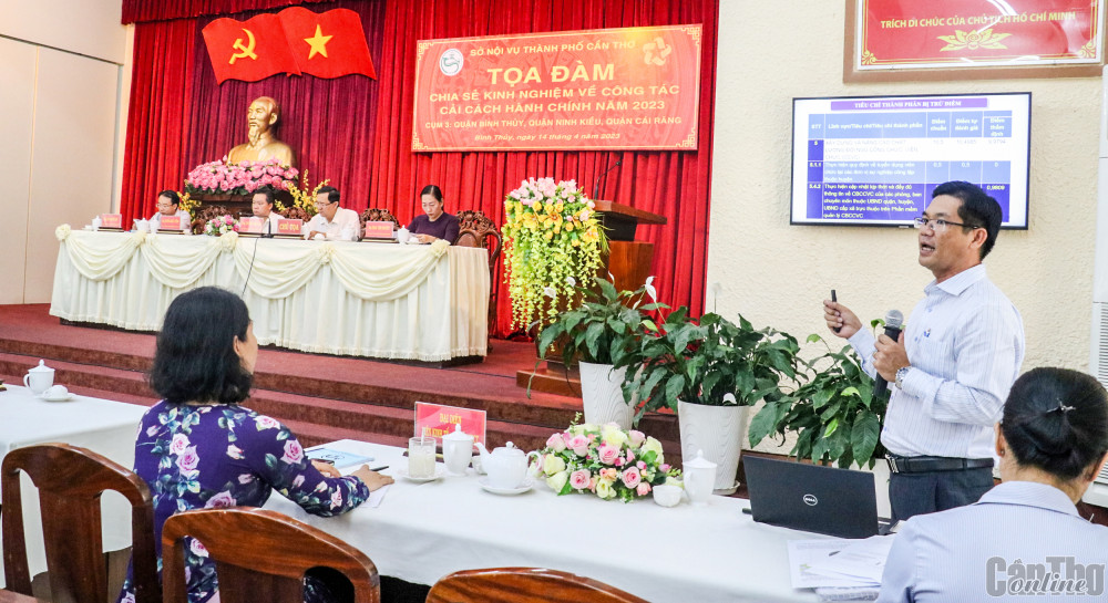 (CT) - Ngày 14-4, Sở Nội vụ TP Cần Thơ phối hợp UBND quận Bình Thủy tổ chức tọa đàm chia sẻ kinh nghiệm về công tác cải cách hành chính (CCHC) năm 2023, cụm 3 gồm các quận Ninh Kiều, Bình Thủy và Cái Răng.