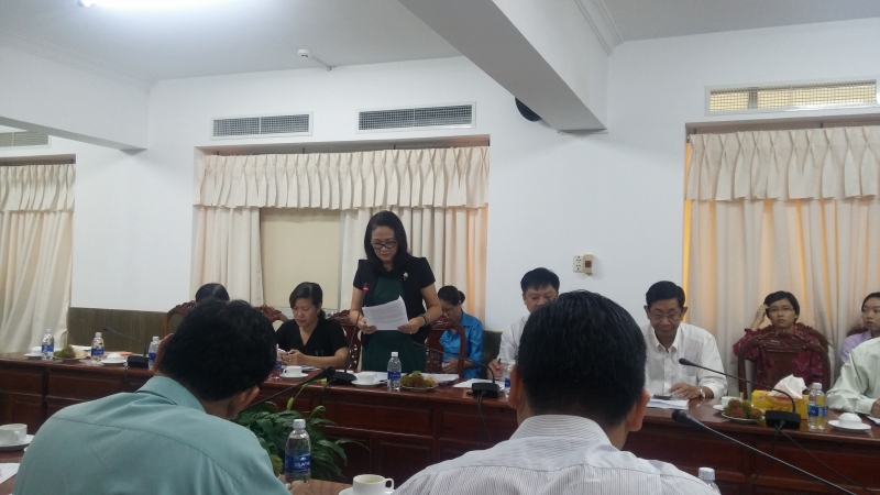 Bà Lê Thị Hải Yến - Phó Giám đốc Sở Tư pháp báo cáo phân tích và đề ra phương hướng nâng cao chất lượng cải cách thủ tục hành chính
