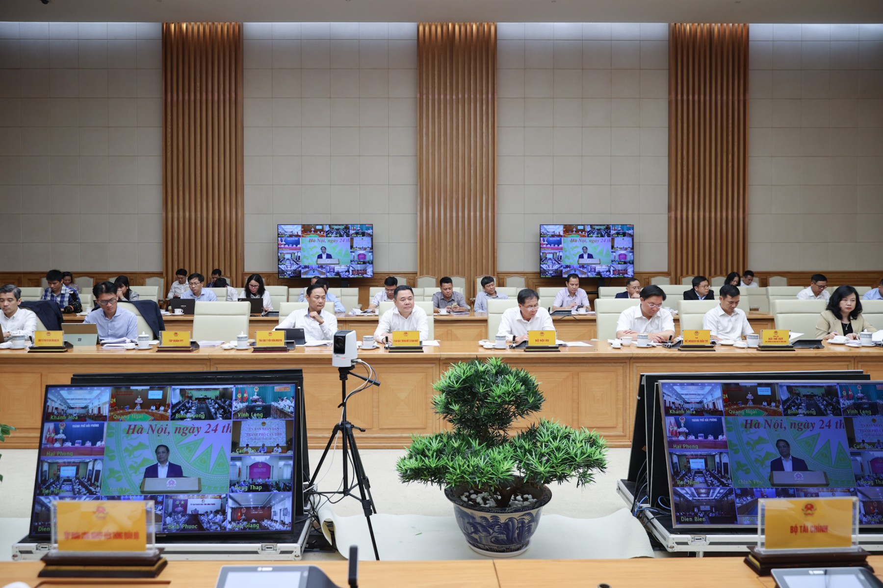 Các đồng chí bộ trưởng, lãnh đạo các bộ, ngành, thành viên Ủy ban; lãnh đạo các địa phương, các tập đoàn, doanh nghiệp lớn về CNTT... tham dự phiên họp - Ảnh: VGP/Nhật Bắc