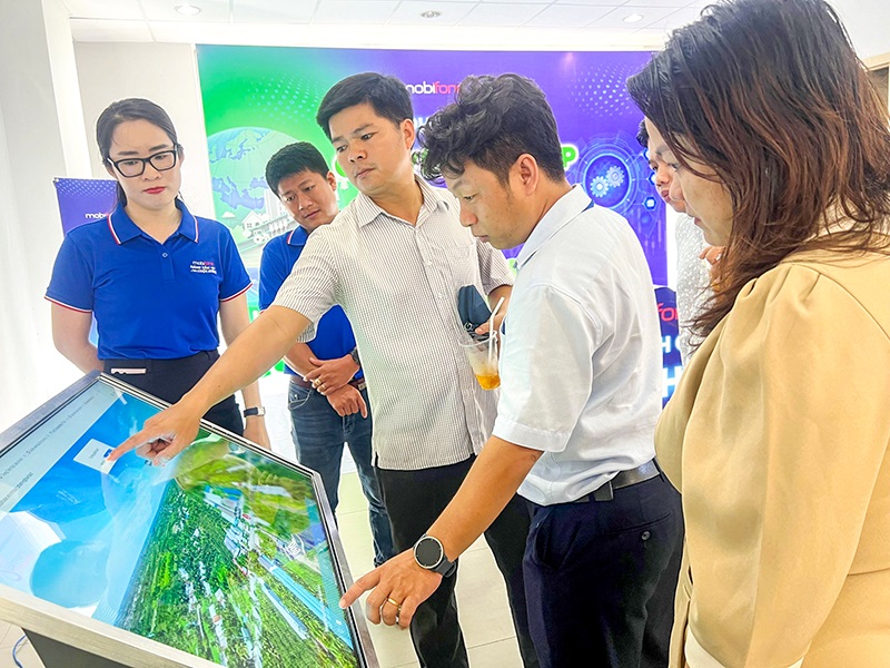 Đại biểu tham quan các giải pháp ứng dụng công nghệ số được giới thiệu tại hội thảo.
