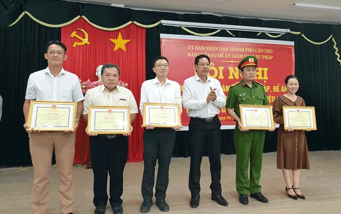 Dịp này, lãnh đạo Sở Tư pháp trao tặng bằng khen của Chủ tịch UBND TP Cần Thơ đến các tập thể và cá nhân có thành tích xuất sắc trong triển khai, thực hiện Luật Giám định tư pháp, Ðề án tiếp tục đổi mới và nâng cao hiệu quả hoạt động giám định tư pháp trên địa bàn thành phố (ảnh).