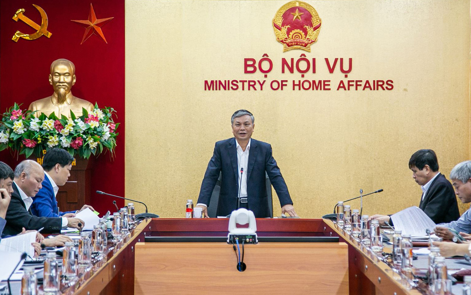 Sáng ngày 16/01/2024, tại Trụ sở Bộ, Thứ trưởng Nguyễn Trọng Thừa, Phó Trưởng ban thường trực Ban Chỉ đạo cải cách hành chính của Bộ Nội vụ (Ban Chỉ đạo) chủ trì cuộc họp mở rộng của Ban Chỉ đạo để đánh giá kết quả thực hiện công tác cải cách hành chính năm 2023 của Bộ Nội vụ; triển khai nhiệm vụ công tác cải cách hành chính năm 2024 của Bộ Nội vụ. Tham dự cuộc họp có các thành viên Ban Chỉ đạo; lãnh đạo và chuyên viên phụ trách cải cách hành chính của các đơn vị thuộc và trực thuộc Bộ.