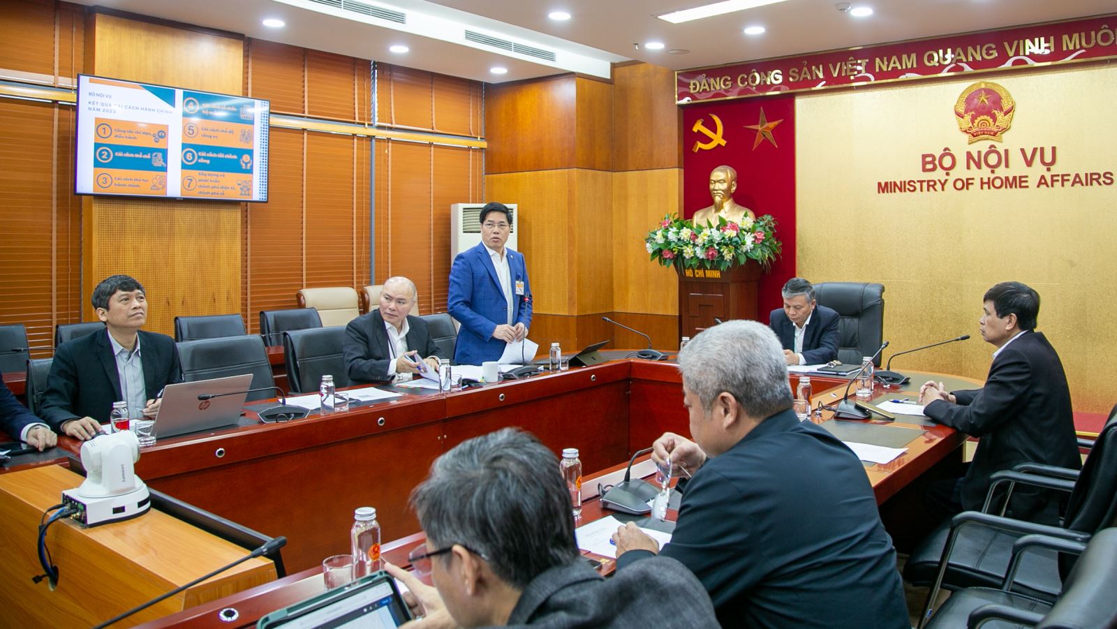 Báo cáo kết quả thực hiện công tác cải cách hành chính năm 2023 của Bộ Nội vụ, Vụ trưởng Vụ Cải cách hành chính Phạm Minh Hùng, Phó Trưởng ban Ban Chỉ đạo cho biết: năm 2023 Bộ Nội vụ tiếp tục theo dõi đôn đốc hướng dẫn các bộ, ngành, địa phương thực hiện các nhiệm vụ cải cách hành chính (CCHC) bám sát các nội dung Nghị quyết số 76/NQ-CP ngày 15/7/2021 của Chính phủ ban hành Chương trình tổng thể CCHC nhà nước giai đoạn 2021 - 2030; tiếp tục triển khai thực hiện Kế hoạch kiểm tra công tác CCHC của Ban Chỉ đạo CCHC của Chính phủ (Ban Chỉ đạo), Phó Trưởng Ban Thường trực Ban Chỉ đạo - Bộ trưởng Bộ Nội vụ, Phó Trưởng Ban Chỉ đạo - Thứ trưởng Bộ Nội vụ đã tổ chức các đoàn kiểm tra công tác CCHC tại các địa phương như: Lâm Đồng, Đắk Lắk, Gia Lai, Kon Tum, Thái Nguyên, Thừa Thiên - Huế, Nghệ An. Thông qua kiểm tra của Ban Chỉ đạo đã đánh giá kết quả triển khai công tác CCHC và kịp thời chỉ đạo triển khai các giải pháp cụ thể nhằm tháo gỡ khó khăn, vướng mắc của các địa phương, qua đó nâng cao hiệu quả thực hiện nhiệm vụ CCHC...