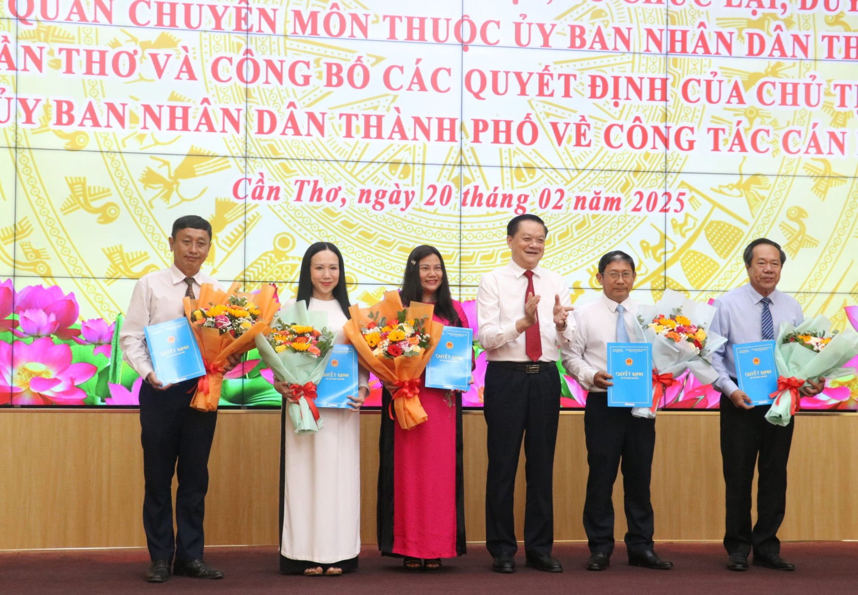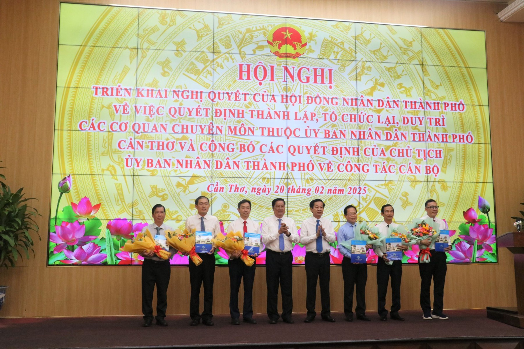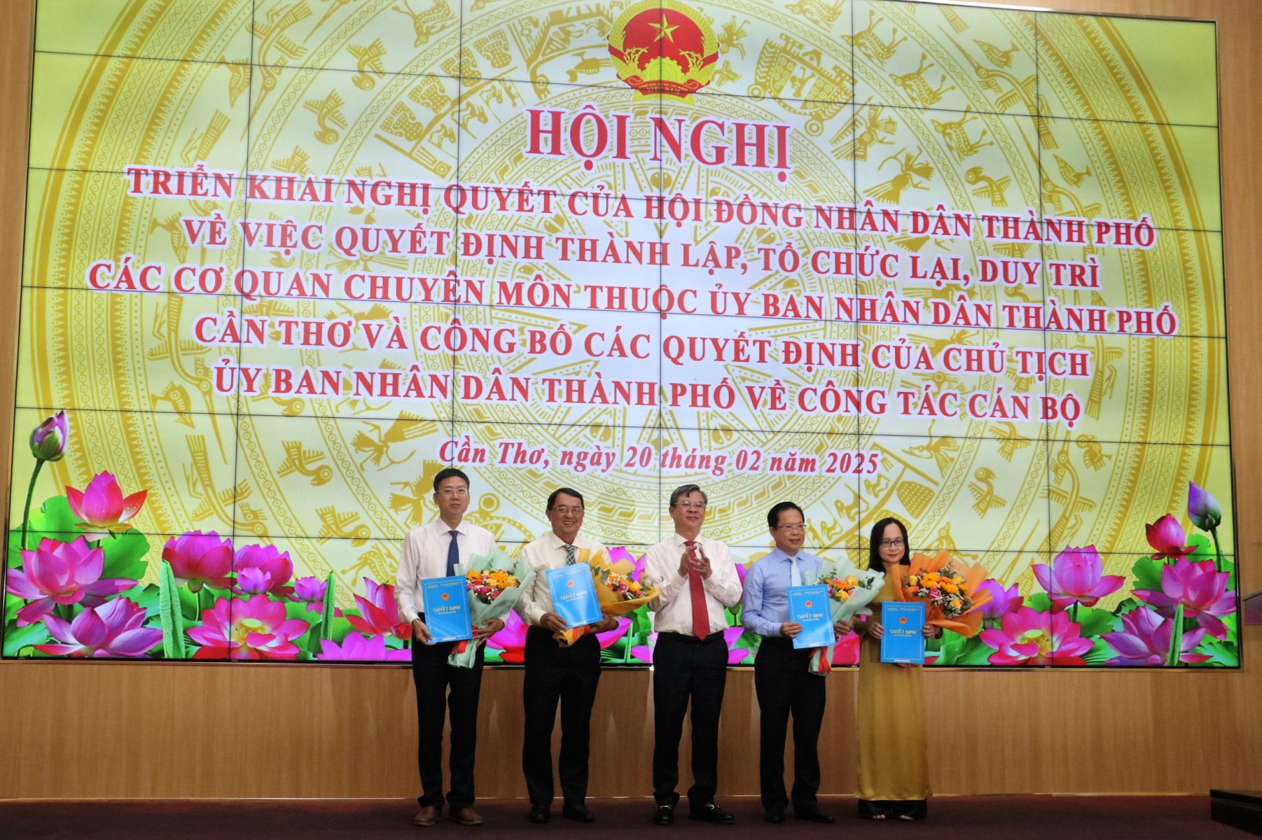 (CT) - Chiều 20-2, UBND TP Cần Thơ tổ chức hội nghị triển khai các nghị quyết của HĐND thành phố về việc quyết định thành lập, tổ chức lại, duy trì các cơ quan chuyên môn thuộc UBND thành phố và công bố các quyết định của Chủ tịch UBND thành phố về công tác cán bộ.