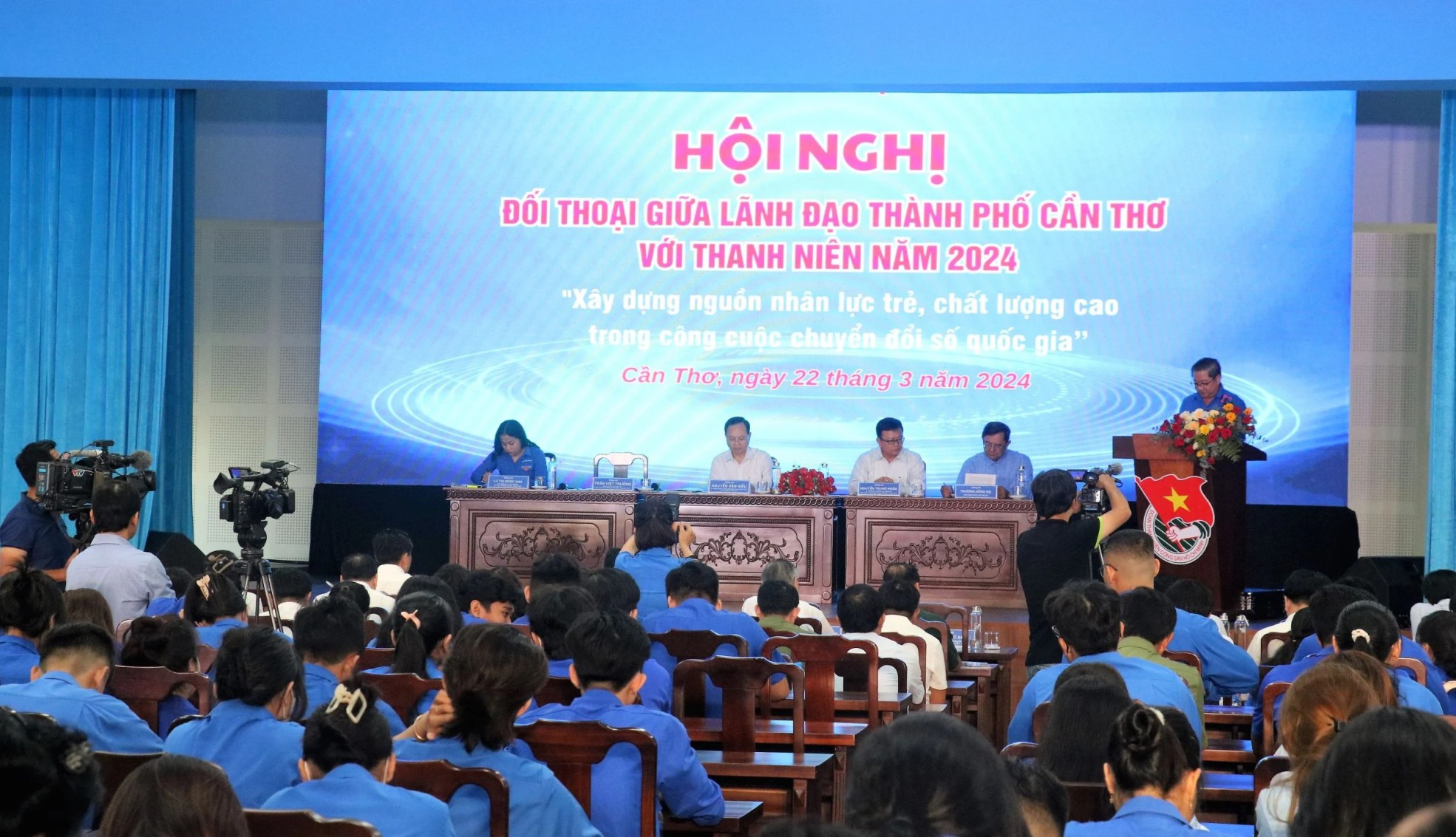 Lãnh đạo TP Cần Thơ đối thoại với thanh niên với chủ đề "Xây dựng nguồn nhân lực trẻ, chất lượng cao trong công cuộc chuyển đổi số quốc gia". Ảnh: Q. THÁI