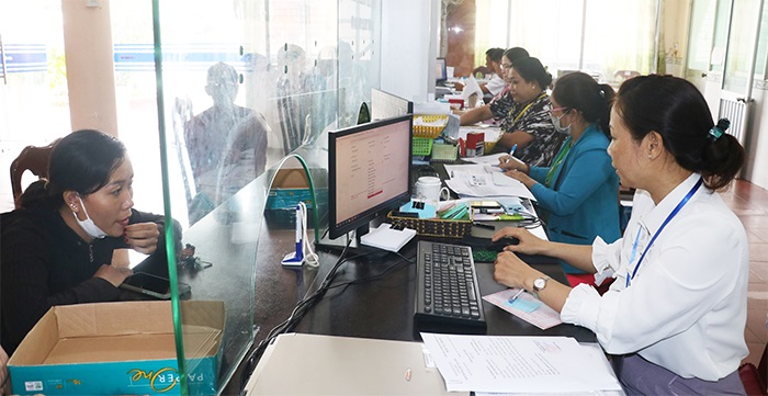 Công chức UBND phường Châu Văn Liêm (quận Ô Môn) tiếp nhận và xử lý thủ tục hành chính của người dân. Ảnh: Quốc Thái