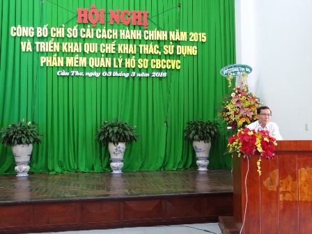 Hội nghị cũng được nghe Ông Nguyễn Thanh Nhanh – Trưởng Phòng Cải cách hành chính Sở Nội vụ trình bày báo cáo Kết quả xác định Chỉ số Cải cách hành chính năm 2015 của sở, ban ngành, Ủy ban nhân dân quận, huyện trên địa bàn thành phố Cần Thơ. Cho thấy Kết quả xác định Chỉ số CCHC năm 2015 của cấp sở, cấp huyện phản ánh tương đối khách quan, trung thực kết quả triển khai cải cách hành hành chính thực tế của các đơn vị, địa phương. Qua đó, giúp lãnh đạo các đơn vị biết được các mặt mạnh, mặt yếu trong triển khai thực hiện các nhiệm vụ CCHC năm 2015 của đơn vị mình, từ đó có tác động tích cực đến công tác chỉ đạo, điều hành CCHC trong thời gian tới.